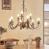Prachtige kroonluchter Caleb met antieke look Caleb is een kroonluchter die veel romantiek in de woonkamer brengt, omdat de armen indrukwekkend en mooi gebogen zijn, zodat je bijna kunt spreken van een speelse look. De kroonluchter past bijzonder goed bij alle stijlen die geassocieerd kunnen worden met de landelijke huisstijl of een rustieke sfeer. Caleb is uitgerust met negen E14 lampen.