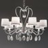Edele kroonluchter Anouk in zilver en wit, 8-vlammen De acht witte tinten van de kroonluchter Anouk zijn gemaakt van edele Shantung stof en worden begrensd door een zilveren rand aan de boven- en onderkant. Het unieke frame van de kroonluchter met platte metalen armen met decoratieve reliëfafwerking is voorzien van een zilverwitte afwerking, waardoor een edele combinatie ontstaat met de witte tinten. De druppelvormige metalen elementen zijn bedekt met bladzilver en vormen het onderste uiteinde van de kroonluchter. De acht-vlammige kroonluchter Anouk van metaal verlicht bijvoorbeeld een eettafel, maar is ook geschikt als representatieve lichtbron voor gastronomische ruimtes of het hotelwezen. De kroonluchter Anouk werd in Italië geproduceerd door een bekende fabrikant wiens producten worden gekenmerkt door hun exclusiviteit en elegantie, naast eersteklas kwaliteit en beste vakmanschap, en vertegenwoordigen representatieve lichtcreaties voor privé- en commerciële ruimtes.
